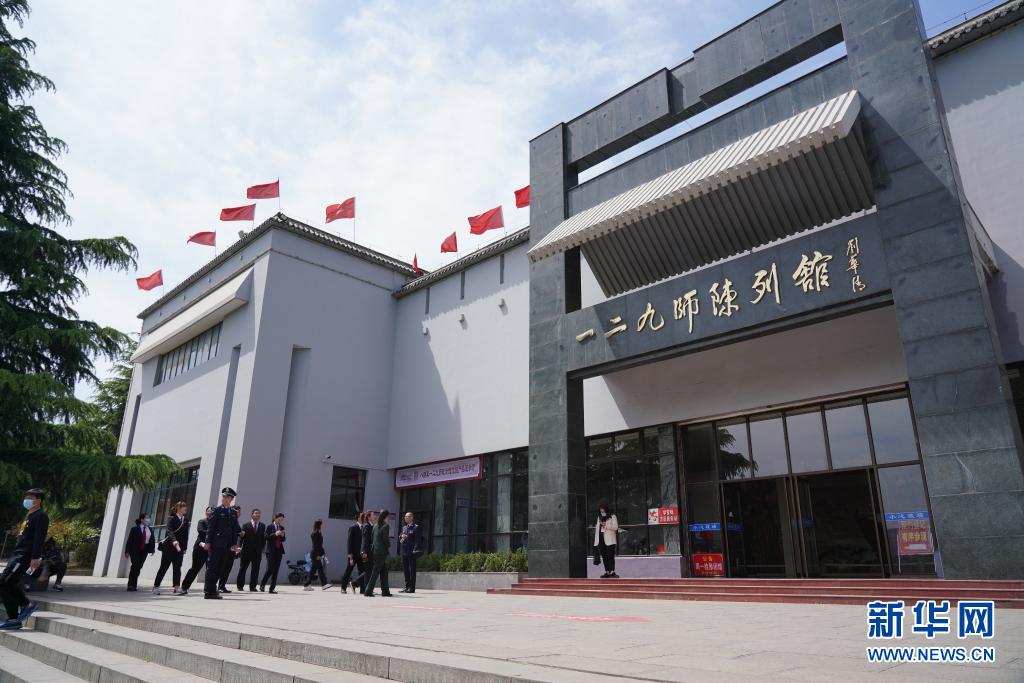 參觀者進入河北省涉縣一二九師陳列館(4月28日攝)。