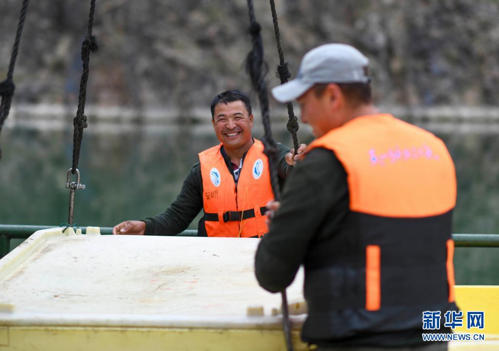 在新疆尼勒克縣喀拉蘇鄉三文魚養殖基地,吳斯班·阿拉勒拜(左)和工友一起收網捕魚(6月17日攝)。 吳斯班·阿拉勒拜是新疆伊犁哈薩克自治州尼勒克縣喀拉蘇鄉加爾托汗村的村民。曾經以牧羊為業的吳斯班是村里的建檔立卡貧困戶,風餐露宿忙碌辛苦,收入卻不高。 喀拉蘇鄉位于天山深處,穿流而過的喀什河清澈冷涼,適合冷水魚養殖。2014年,新疆天蘊有機農業有限公司依托這里的優質資源發展冷水魚養殖,在自身發展的同時,助力當地脫貧。貧困戶除參與合作社經營獲得勞動報酬,還通過扶貧貼息貸款入股獲得固定分紅。 2016年,吳斯班放下了手中的牧羊鞭,來到養殖基地就業,過上了父輩從未有過的漁民生活。在這里上班,吳斯班每個月拿4000元工資,還可以按期領取分紅。這種長效的利益聯結機制,幫助實現了企業發展和貧困戶增收“雙贏”。 2018年,喀拉蘇鄉實現整體脫貧,吳斯班也摘掉了貧困帽子。吳斯班說,如今每天按時上下班,還可以看到清澈的喀什河,要繼續努力工作,讓日子越過越紅火。 新華社記者 丁磊 攝
