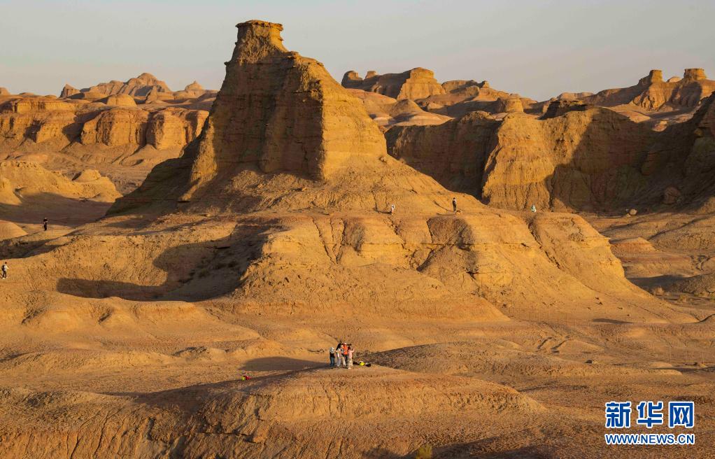 游客在新疆克拉瑪依烏爾禾世界魔鬼城景區內拍照游玩(6月21日攝,無人機照片)。 世界魔鬼城景區位于新疆克拉瑪依市烏爾禾區,屬于典型的雅丹地貌。盛夏時節,景區正值旅游旺季,壯美的風光令游客沉醉其中。 新華社記者 顧煜 攝