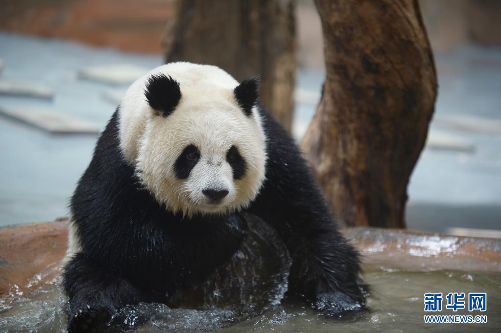 6月27日,在青海省西寧熊貓館,大熊貓“園滿”在水池中玩耍。 當日,在青海省西寧熊貓館,大熊貓“奇果”“園滿”迎來5歲生日會。工作人員用蘋果、竹子等食物做成生日蛋糕和美食,還準備了不倒翁取食器等玩具為它們慶生。 新華社記者 張曼怡 攝