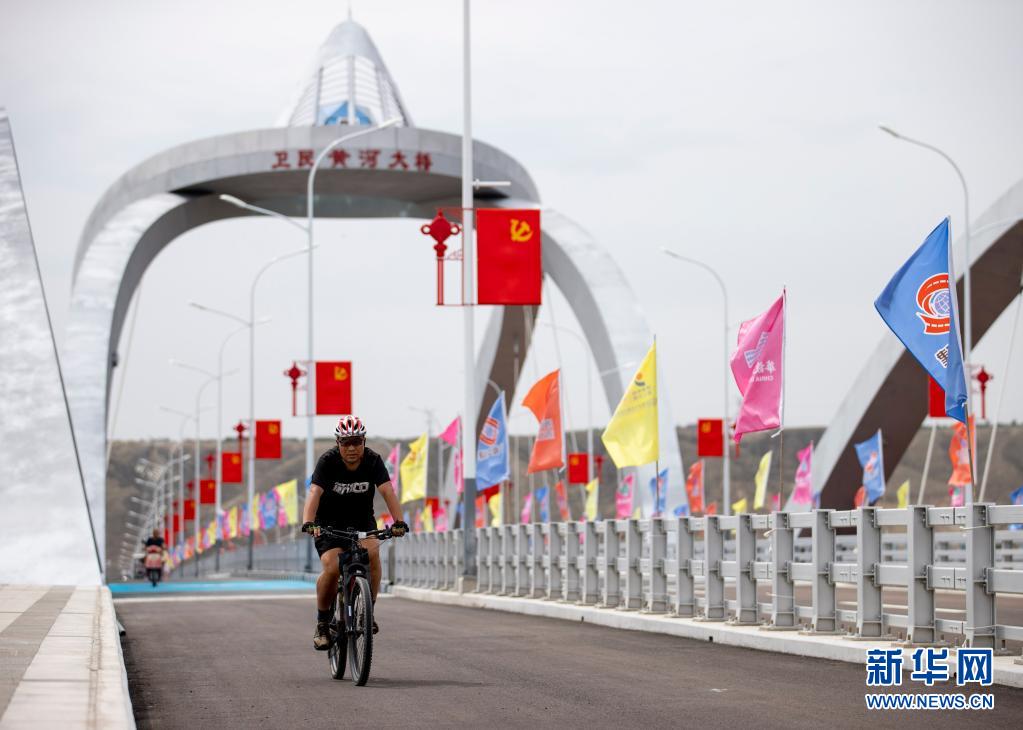 6月28日,市民騎行通過中衛衛民黃河大橋。 當日,寧夏中衛衛民黃河大橋建成通車。該橋位于黃河中衛段,是寧夏境內第18座跨越黃河的公路橋梁。 新華社記者 楊植森 攝