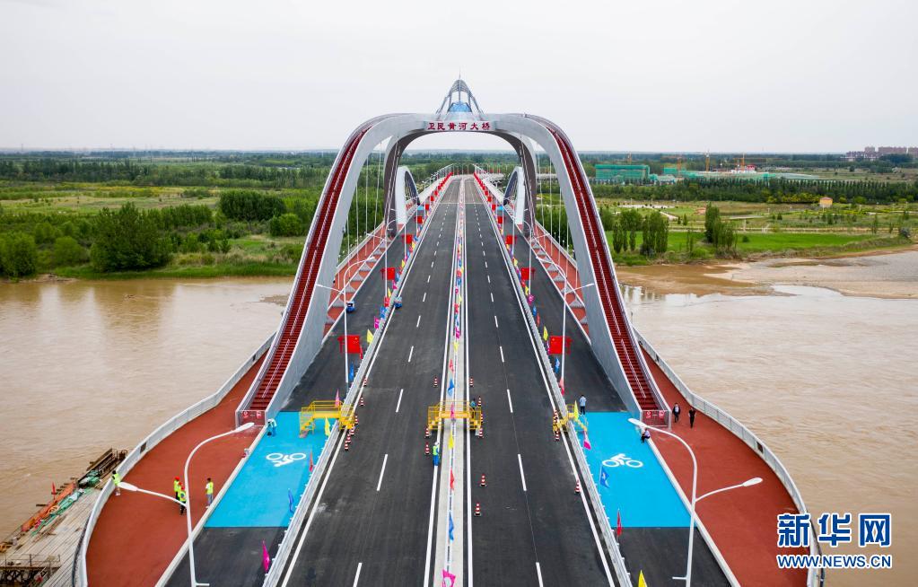 6月28日拍攝的中衛衛民黃河大橋(無人機照片)。 當日,寧夏中衛衛民黃河大橋建成通車。該橋位于黃河中衛段,是寧夏境內第18座跨越黃河的公路橋梁。 新華社記者 楊植森 攝