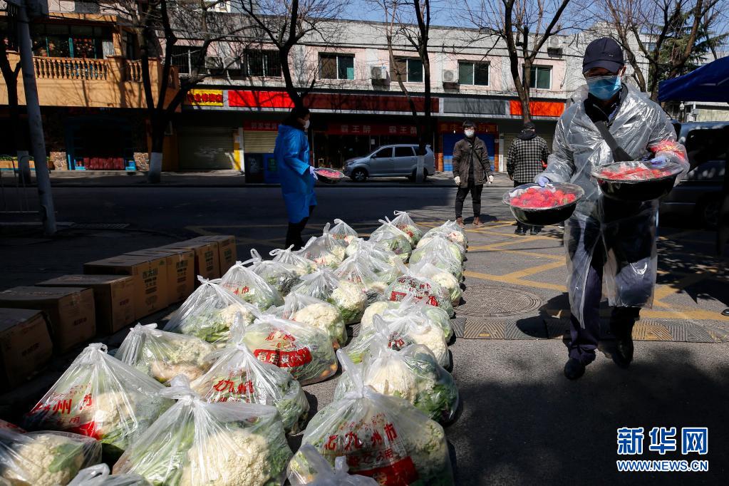 下沉至武漢市花橋社區的干部在搬運居民訂購的草莓(2020年2月20日攝)。新華社記者 沈伯韓 攝 |