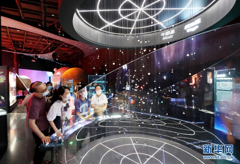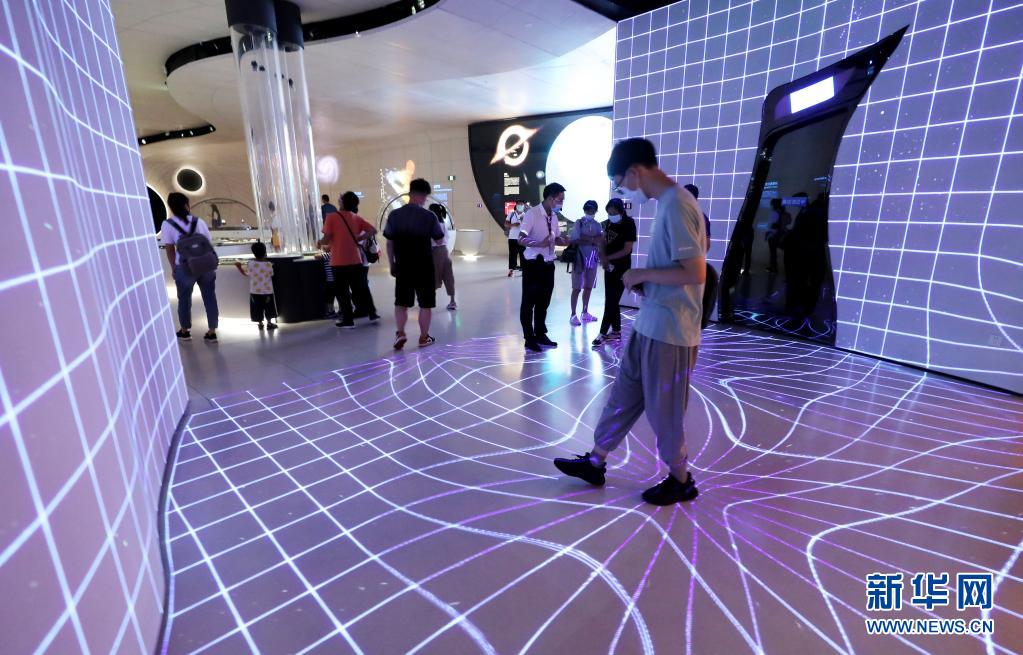 7月5日,參觀者行走在“家園”主題展區內。 7月5日,上海天文館舉行媒體探營活動。上海天文館(上海科技館分館)計劃于7月17日正式開館,18日起對公眾開放。上海天文館位于上海自貿區臨港新片區,建筑面積約3.8萬平方米。上海天文館展陳分為“家園”“宇宙”“征程”三大主題展區,以及“中華問天”“好奇星球”“航向火星”等特色展區。 新華社記者 方喆 攝