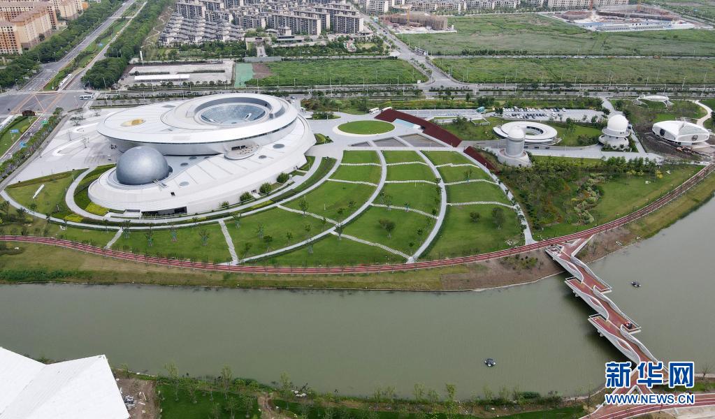 俯瞰上海天文館(無人機照片,7月5日攝)。 7月5日,上海天文館舉行媒體探營活動。上海天文館(上海科技館分館)計劃于7月17日正式開館,18日起對公眾開放。上海天文館位于上海自貿區臨港新片區,建筑面積約3.8萬平方米。上海天文館展陳分為“家園”“宇宙”“征程”三大主題展區,以及“中華問天”“好奇星球”“航向火星”等特色展區。 新華社記者 方喆 攝
