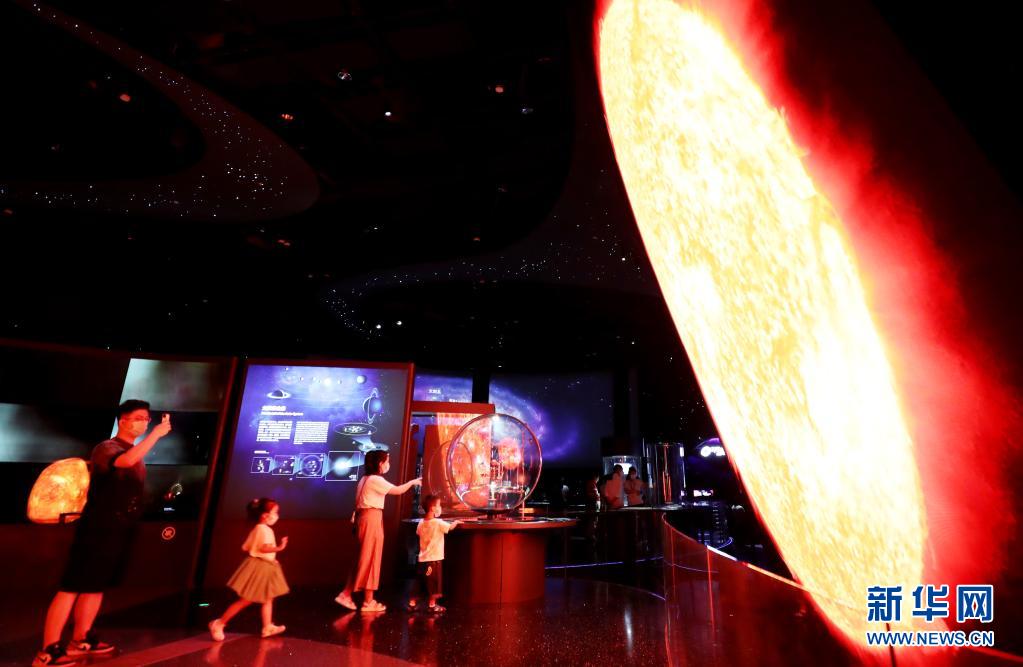 7月5日,參觀者在一個名為“太陽的鄰居”的裝置展品前駐足觀看。 7月5日,上海天文館舉行媒體探營活動。上海天文館(上海科技館分館)計劃于7月17日正式開館,18日起對公眾開放。上海天文館位于上海自貿區臨港新片區,建筑面積約3.8萬平方米。上海天文館展陳分為“家園”“宇宙”“征程”三大主題展區,以及“中華問天”“好奇星球”“航向火星”等特色展區。 新華社記者 方喆 攝