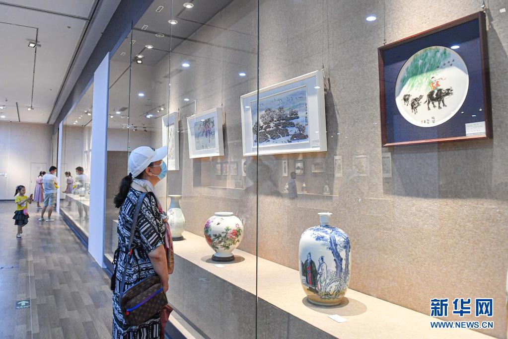 7月18日,觀眾在位于??诘暮D鲜〔┪镳^觀看景德鎮陶瓷藝術作品展。