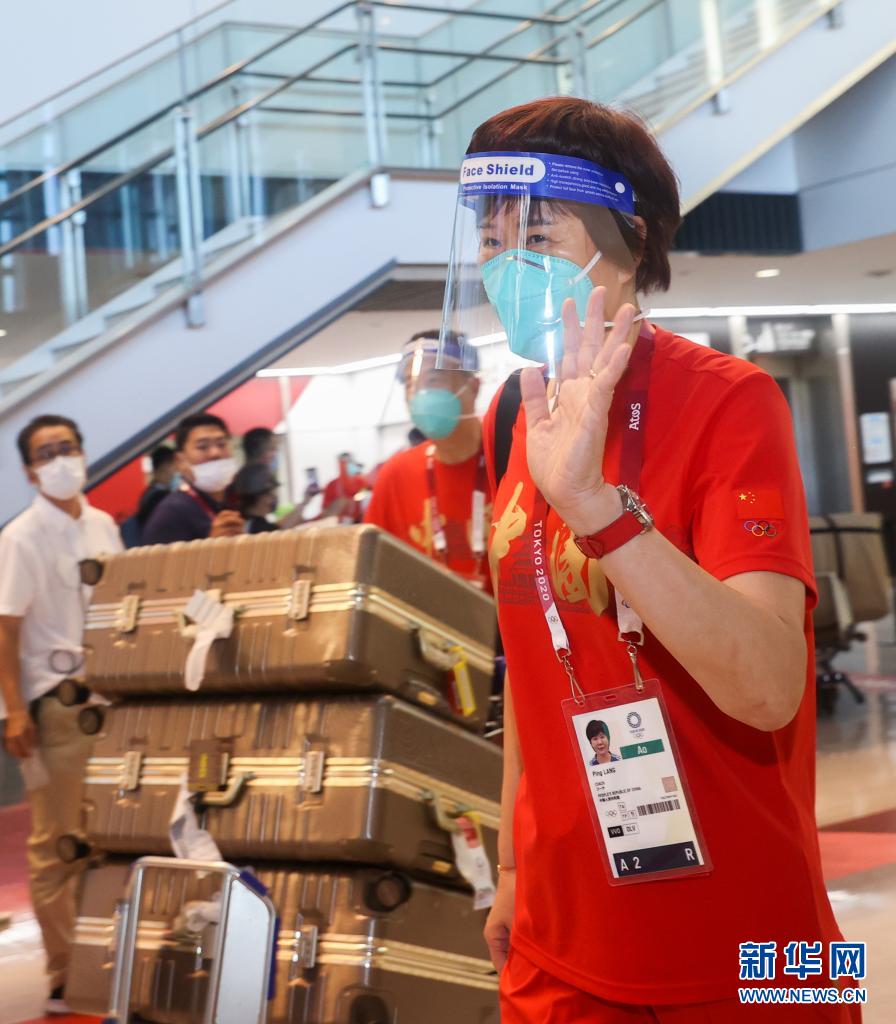 7月19日,中國女排主教練郎平抵達東京成田機場。 當日,參加東京奧運會的中國體育代表團部分成員抵達東京。 新華社記者 丁汀 攝