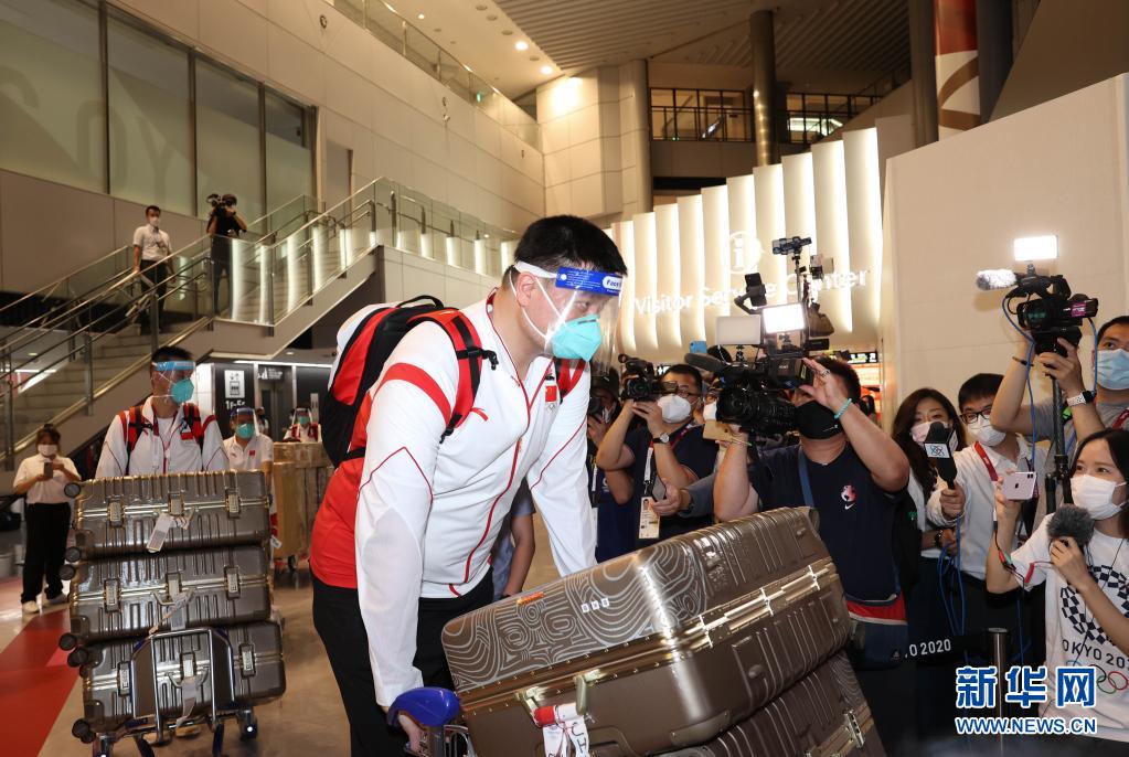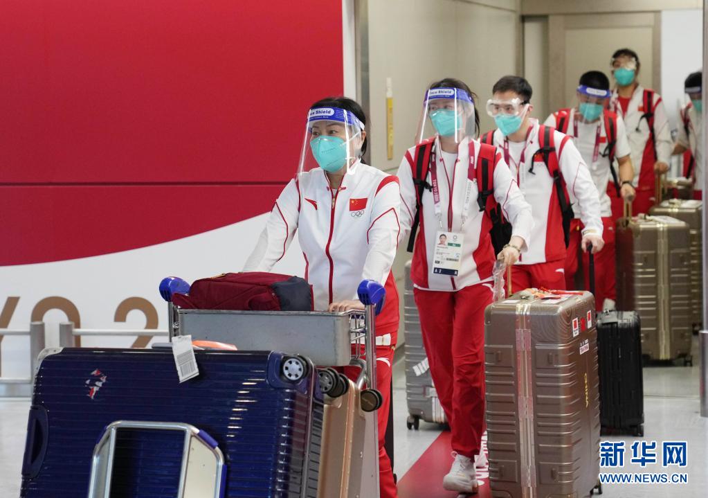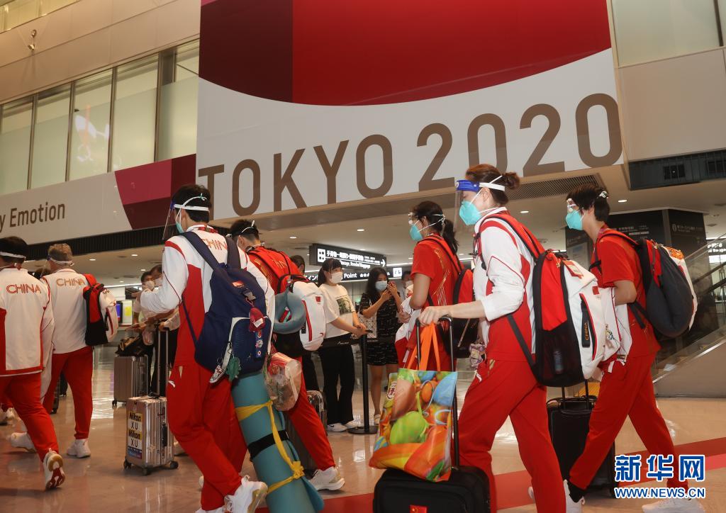 7月19日,中國體育代表團成員抵達東京成田機場。 當日,參加東京奧運會的中國體育代表團部分成員抵達東京。 新華社記者 丁汀 攝