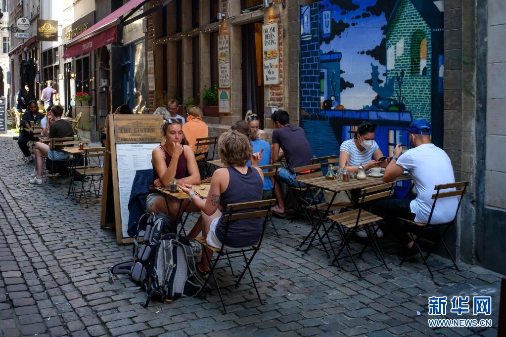 7月19日,人們在比利時布魯塞爾大廣場附近的餐館吃飯。