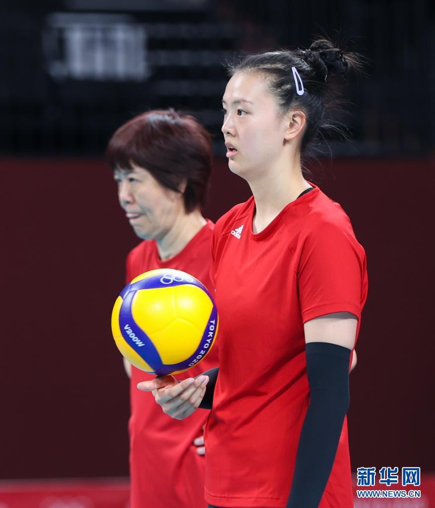7月21日,中國女排主教練郎平(左)與球員交流。 當(dāng)日,中國女排在東京有明體育館進(jìn)行訓(xùn)練,備戰(zhàn)東京奧運(yùn)會比賽。 新華社記者丁汀攝