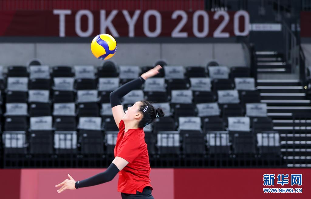 7月21日,中國女排隊(duì)員在訓(xùn)練中。 當(dāng)日,中國女排在東京有明體育館進(jìn)行訓(xùn)練,備戰(zhàn)東京奧運(yùn)會比賽。 新華社記者丁汀攝