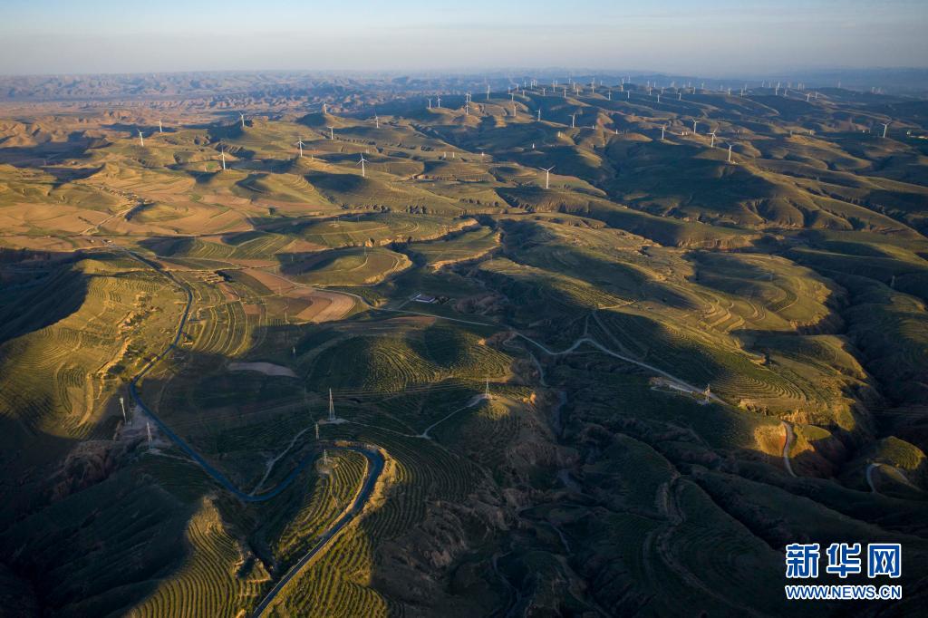 位于寧夏吳忠市同心縣境內的窯山,山坡被綠色覆蓋(6月22日攝,無人機照片)。新華社記者 楊植森 攝