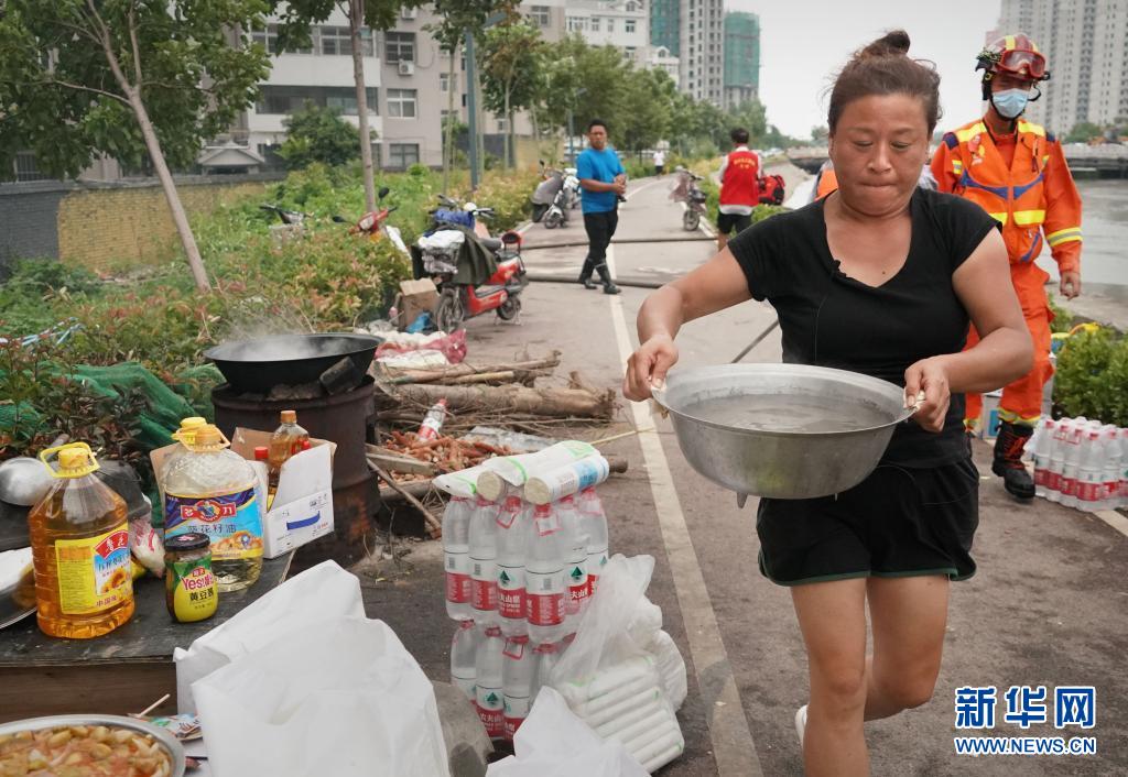 7月28日,衛(wèi)輝市明珠花園小區(qū)居民在為救援人員準備午飯。 “燴菜、面條、綠豆粥,這有飯,大家來吃吧?!焙幽鲜⌒l(wèi)輝市明珠花園小區(qū)外,兩口大鍋、幾張桌子,旁邊擺放著做好的飯菜,小區(qū)居民熱情地招呼著救援人員吃飯。 近日,受持續(xù)強降雨影響,衛(wèi)輝市內澇嚴重,很多小區(qū)被積水圍困,來自全國各地的救援人員夜以繼日地開展轉移群眾、排水排澇作業(yè)。為了能讓救援人員吃上熱飯菜,明珠花園小區(qū)的居民自發(fā)組織起來,在小區(qū)外支起就餐點,免費為救援人員提供飯菜。“他們從四面八方趕來幫助我們,我們要以心換心,用自己的方式幫助他們?!泵髦榛▓@小區(qū)的居民說。新華社記者 李安 攝