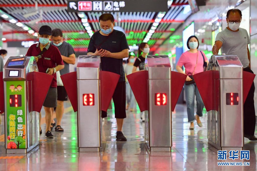 8月2日,在長沙地鐵馬廠站,乘客佩戴口罩出行。