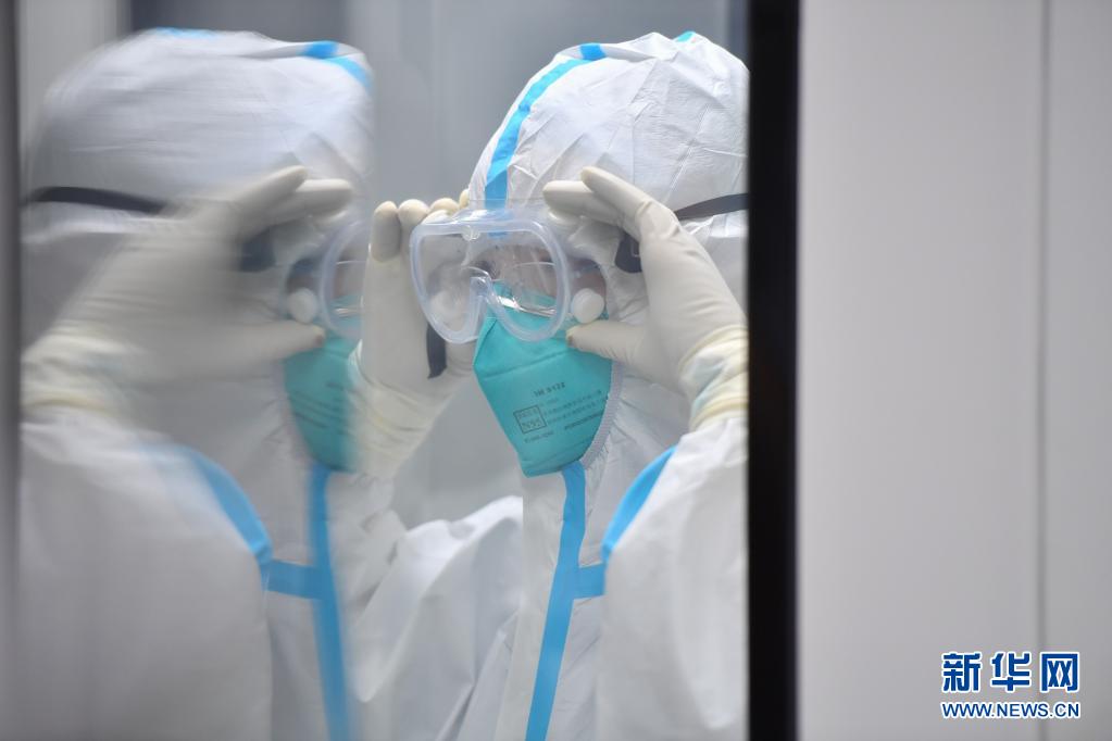 8月4日,在株洲市中心醫院的集成式自動化核酸檢測實驗室內,醫護人員佩戴護目鏡。 當日,位于湖南省株洲市中心醫院的集成式自動化核酸檢測實驗室進入調試階段,醫護人員進行了模擬使用演練,預計8月5日正式投入運行。據了解,實驗室設置有試劑準備室、樣本制備室、核酸擴增室三個主功能區,并配套更衣室、消毒室、機電室等功能間,具有自動化程度高、安全性能高、檢測通量大等優勢,檢測通量日均最高可達1萬份標本,混采時1天可完成10萬人次的核酸檢測。 新華社記者 陳澤國 攝