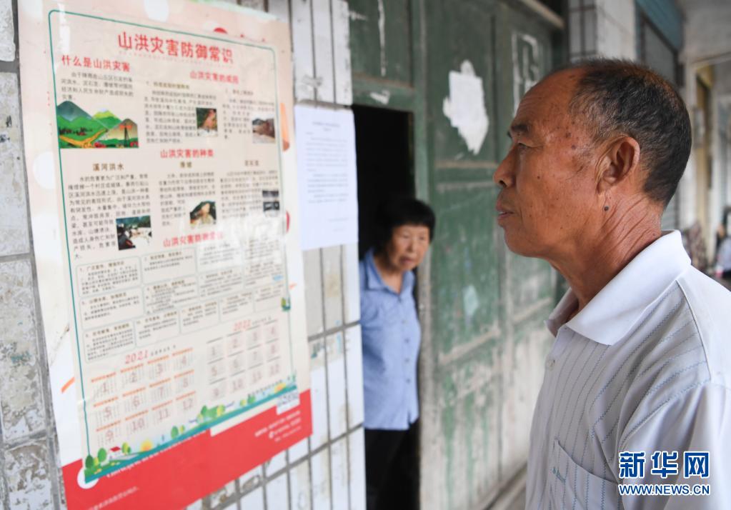 8月8日,重慶市開(kāi)州區(qū)岳溪鎮(zhèn)胡家村村民在查看山洪災(zāi)害防御常識(shí)。
