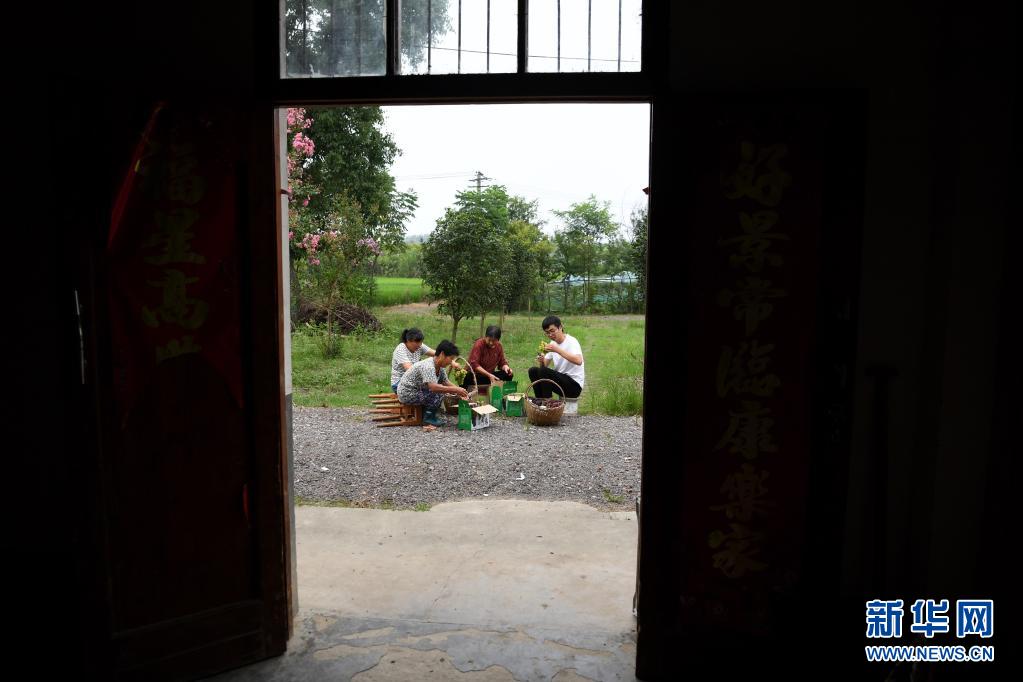 8月10日,丁翔(右一)和村民一起包裝采摘的葡萄。新華社記者 劉軍喜 攝