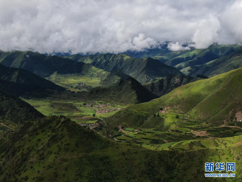 這是8月7日在青海省果洛藏族自治州班瑪縣境內拍攝的村莊景色(無人機照片)。 青海省果洛藏族自治州班瑪縣位于青甘川三省交界處,縣域內坐落著瑪可河林場和“紅軍溝”革命遺址。近年來,班瑪縣立足高原凈土的自然環境,依靠當地濃郁的藏族傳統文化、多民族融合的建筑風格及紅色旅游資源,助力農牧民增收,實現鄉村振興。 新華社記者 張龍 攝