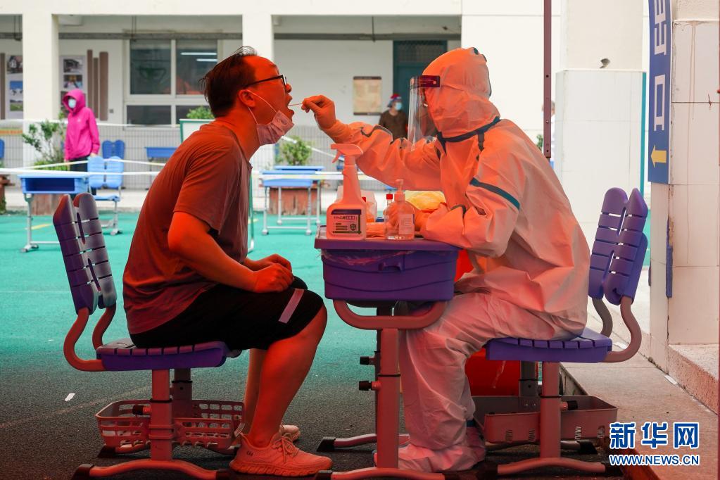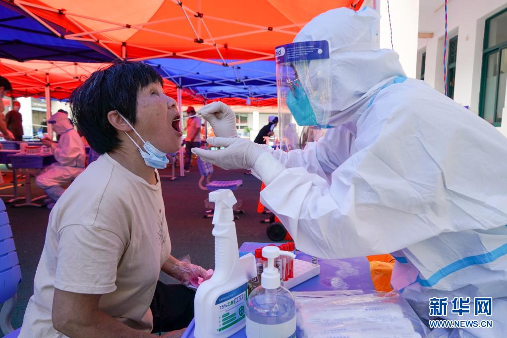 8月11日,市民在揚州市廣陵區汶河街道一處核酸檢測點進行核酸檢測取樣。 當日,江蘇省揚州市主城區啟動第六輪大規模核酸檢測。本次檢測范圍包括邗江區、廣陵區、經濟技術開發區、生態科技新城、蜀岡—瘦西湖風景名勝區范圍內全部居民(含外地在揚人員)。 新華社記者 李博 攝