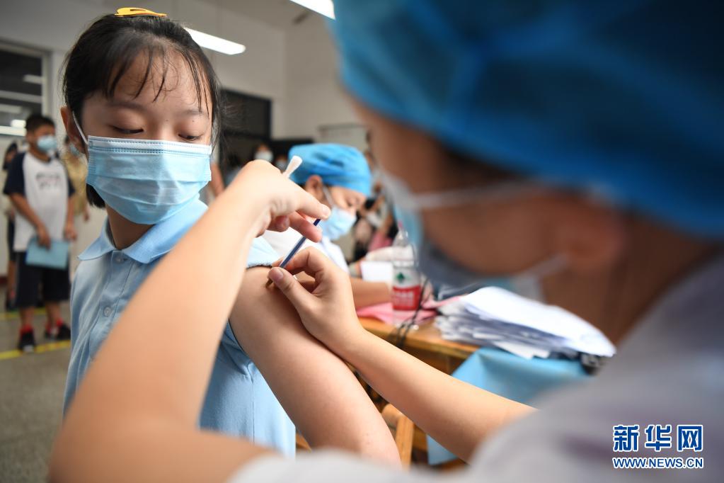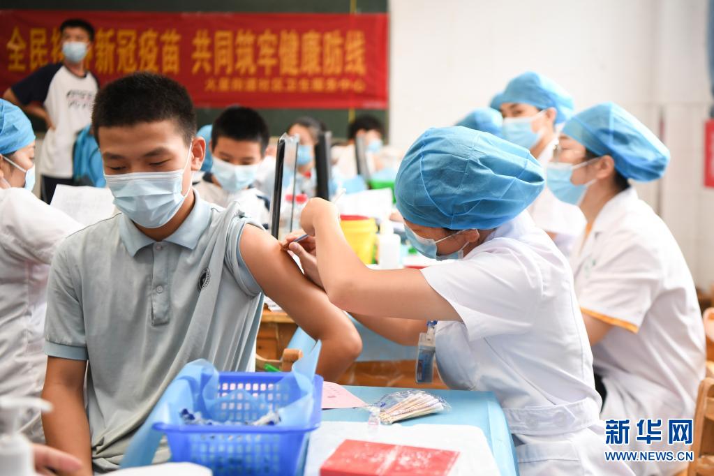 8月14日,湖南省長沙市湘一芙蓉第二中學學生在學校接種新型冠狀病毒疫苗。