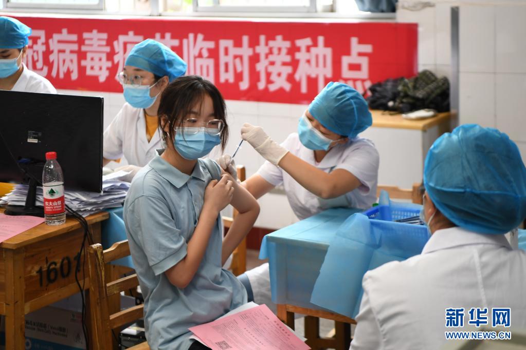 8月14日,湖南省長沙市湘一芙蓉第二中學學生在學校接種新型冠狀病毒疫苗。