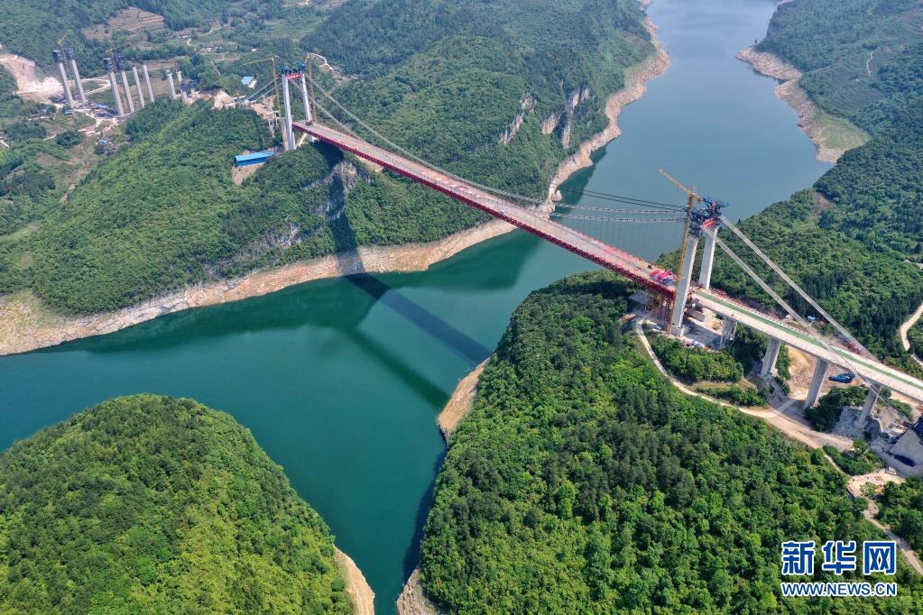 這是合龍后的遵余高速飛龍湖烏江大橋(2020年4月29日攝,無人機照片)。