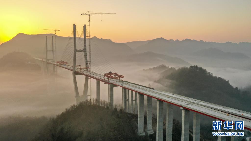 這是貴州都勻至安順高速公路云霧大橋合龍場景(2021年1月18日攝,無人機照片)。
