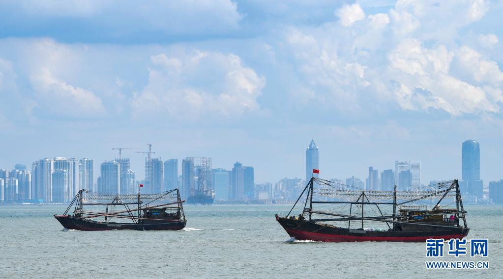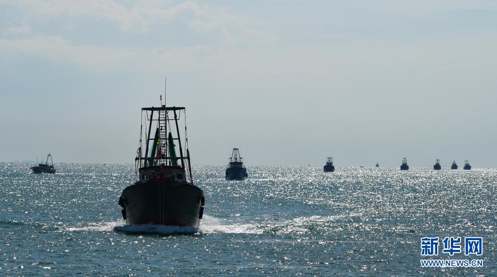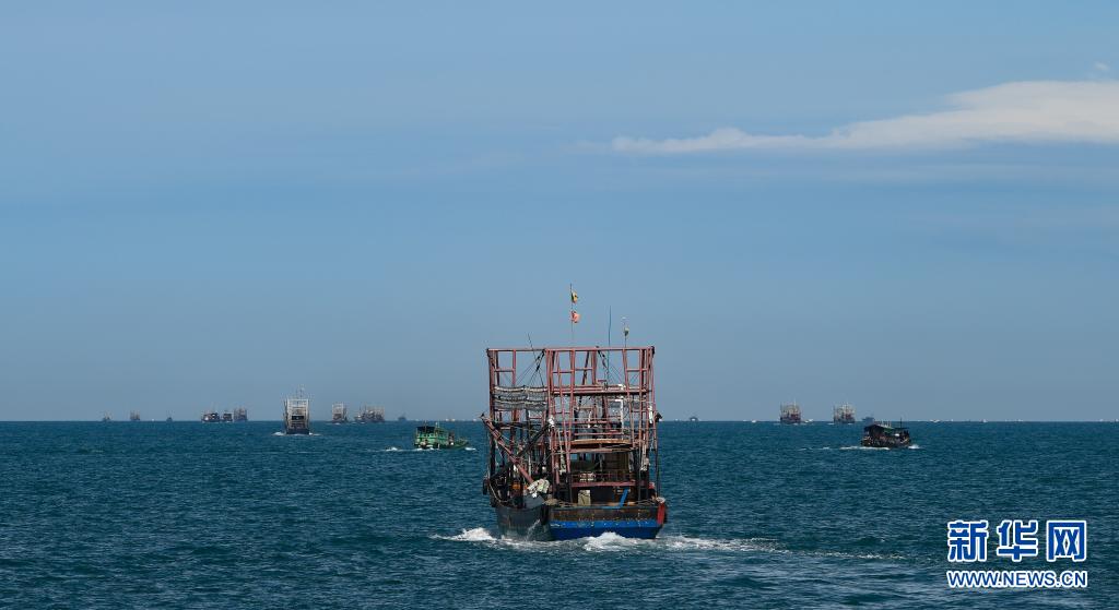 8月16日,漁船陸續通過瓊州海峽。 當日中午12時,為期三個半月的中國南海伏季休漁期結束,漁船陸續出海,前往目的地作業。 新華社記者 楊冠宇 攝