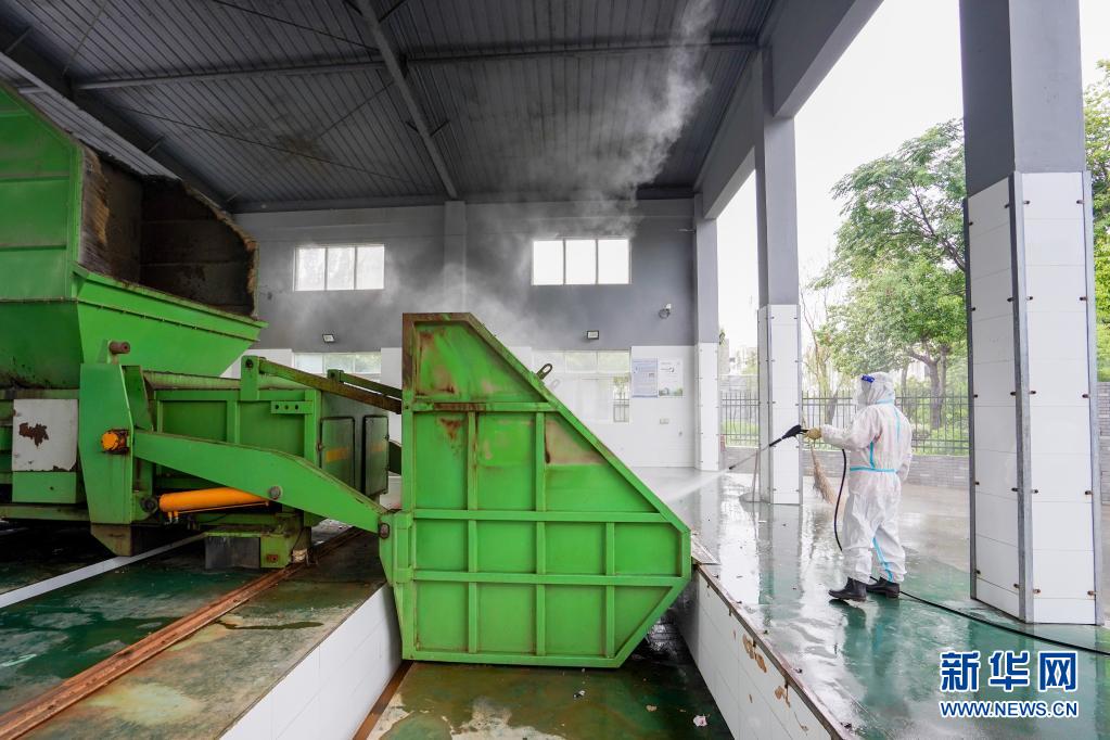 8月18日,在揚州市邗江區蔣王生活垃圾中轉站,環衛工人在對垃圾處理設施進行消殺。 自疫情防控工作開展以來,揚州市區4000余名環衛工人全力以赴投入防疫一線,做好環境消毒消殺工作。據介紹,揚州市環衛部門對風險區域生活垃圾,實行單獨收集、運輸,做到“設置專桶、專人收集、專人運輸”;同時,在這些風險區域的生活垃圾進入生活垃圾焚燒發電廠后,環衛部門不做預處理、優先焚燒;此外,環衛工人在居民小區的生活垃圾收集點,做到每次收集前后各消殺1次,每日消殺不少于2次,確保不留隱患。 新華社記者 李博 攝