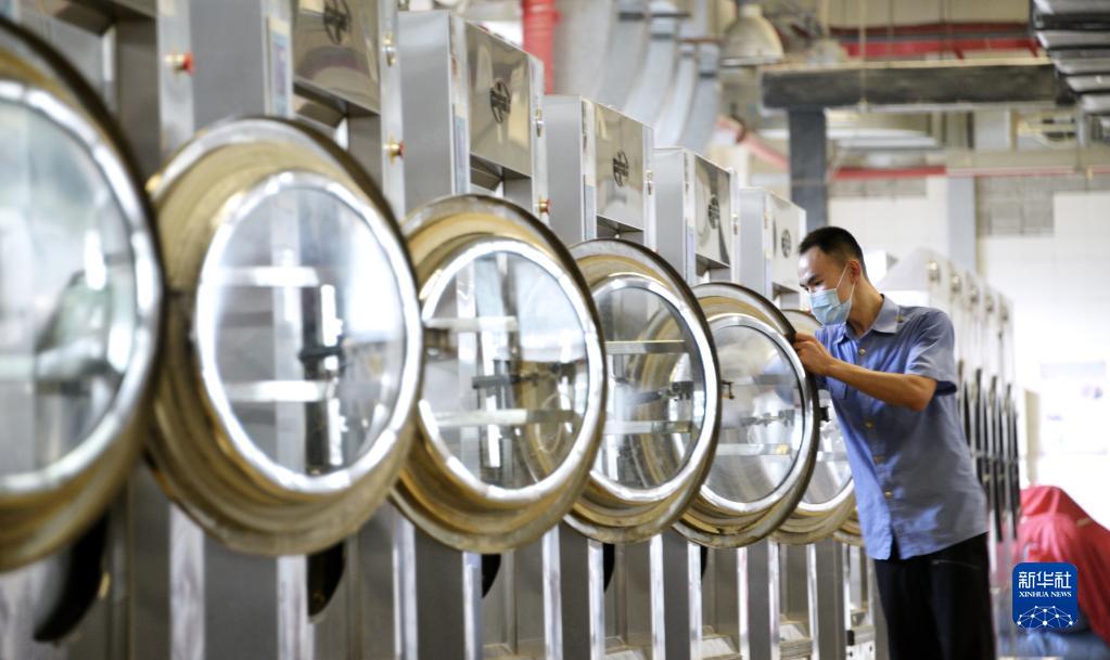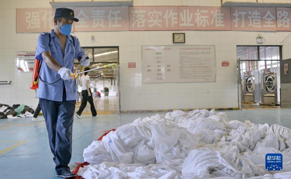 8月23日,北京客運段洗滌車間的工作人員在進行洗滌前設(shè)備清潔消毒工作。 中國鐵路北京局集團有限公司北京客運段為保障旅客出行安全,加強列車臥具、窗簾、臺布洗滌過程中的防疫消毒工作,北京客運段洗滌車間的所有洗滌物品都要經(jīng)過洗滌前消毒、高溫洗滌、滅菌洗滌和高溫熨燙四道消殺滅菌工序,保障鐵路出行安全。 新華社記者 李欣 攝