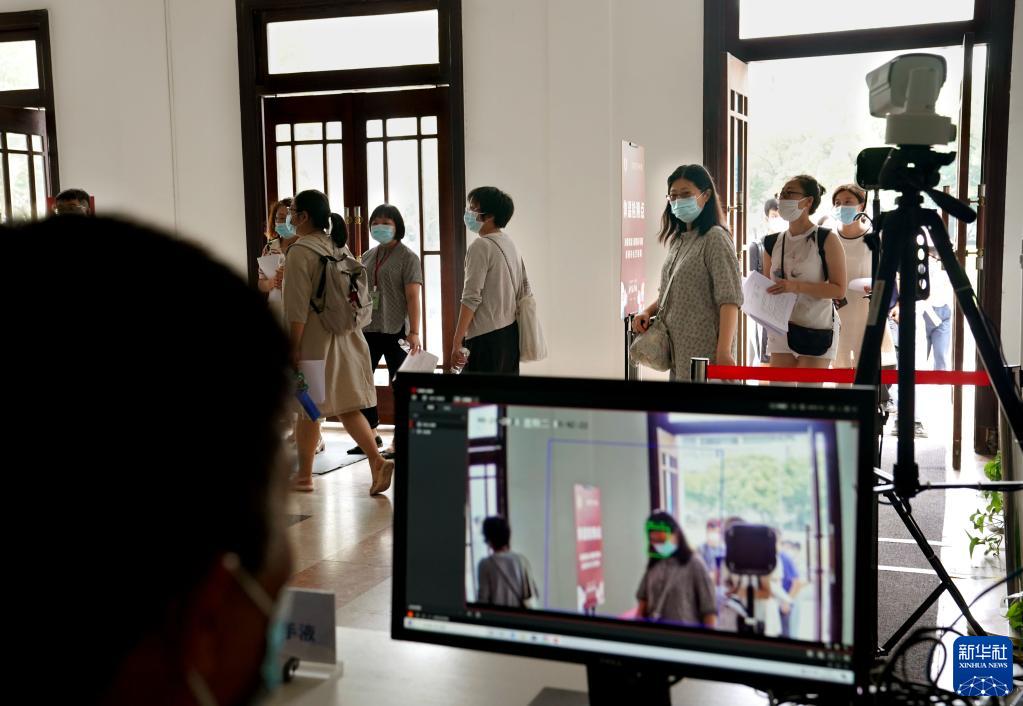 8月24日,在華東師范大學(xué),參加演練的人員進(jìn)入教學(xué)樓時接受測溫。 當(dāng)日,華東師范大學(xué)舉行2021年秋季學(xué)期開學(xué)疫情防控演練,以進(jìn)一步做好開學(xué)期間校園防疫工作。 新華社記者 劉穎 攝
