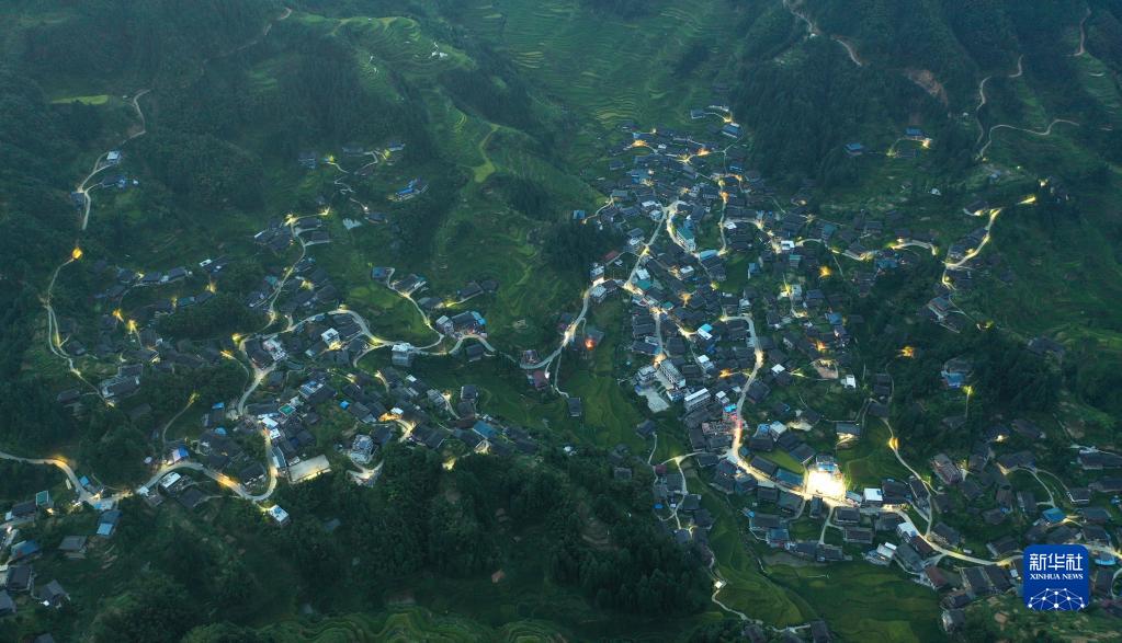 這是廣西融水苗族自治縣桿洞鄉錦洞村夜景(無人機照片,8月26日攝)。