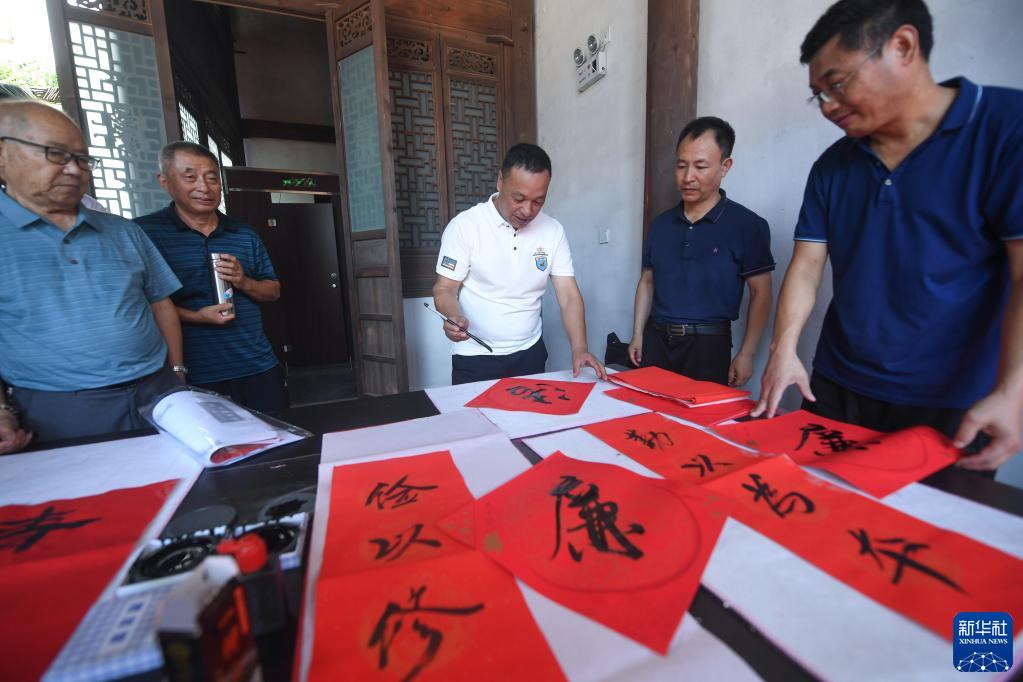 9月1日,杭州市臨安區高虹鎮廉政文藝宣傳隊隊員在寫廉政文化對聯。 近年來,浙江省杭州市臨安區高虹鎮紀委創新廉政教育模式,組建基層廉政文藝宣傳隊,創作了小品表演、快板小段、歌舞朗誦、書法畫作等形式的一批有地方特色的廉政文藝節目和作品,依托文化禮堂、鄉村大舞臺等群眾喜聞樂見的平臺,將廉政文化送到鄉村百姓家門口,同時開發數字化村務平臺,公開村級工程和財務等,營造倡廉守廉的濃厚氛圍,助力清廉村居建設。 新華社記者 徐昱 攝
