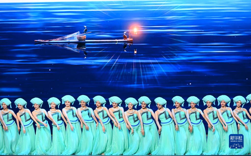 這是歌舞《壯美漓江》(8月31日攝)。 8月31日晚,第六屆全國少數民族文藝會演開幕式文藝晚會在北京隆重舉行。 新華社記者 李響 攝
