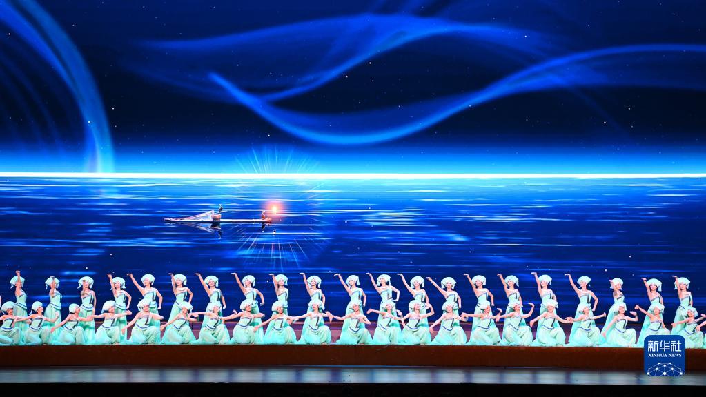 這是舞蹈《遠航》(8月31日攝)。 8月31日晚,第六屆全國少數民族文藝會演開幕式文藝晚會在北京隆重舉行。 新華社記者 李響 攝