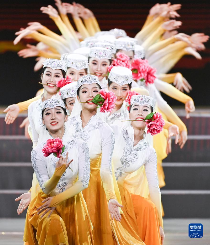 這是舞蹈《火紅的日子》(8月31日攝)。 8月31日晚,第六屆全國少數民族文藝會演開幕式文藝晚會在北京隆重舉行。 新華社記者 李響 攝