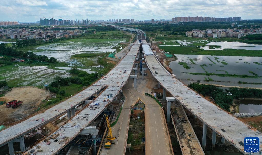 9月2日拍攝的沈海高速海口段項目施工工地(無人機照片)。