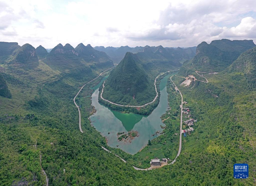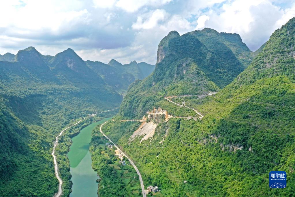 這是廣西都安瑤族自治縣菁盛鄉境內紅水河兩岸的公路(9月1日攝,無人機照片)。新華社記者 周華 攝