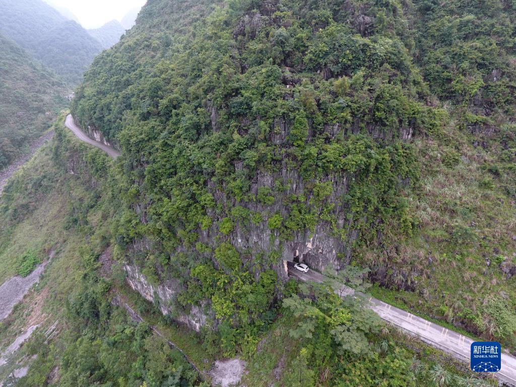 這是廣西都安瑤族自治縣澄江鎮境內的山區公路隧道(2017年8月2日攝,無人機照片)。新華社記者 陸波岸 攝