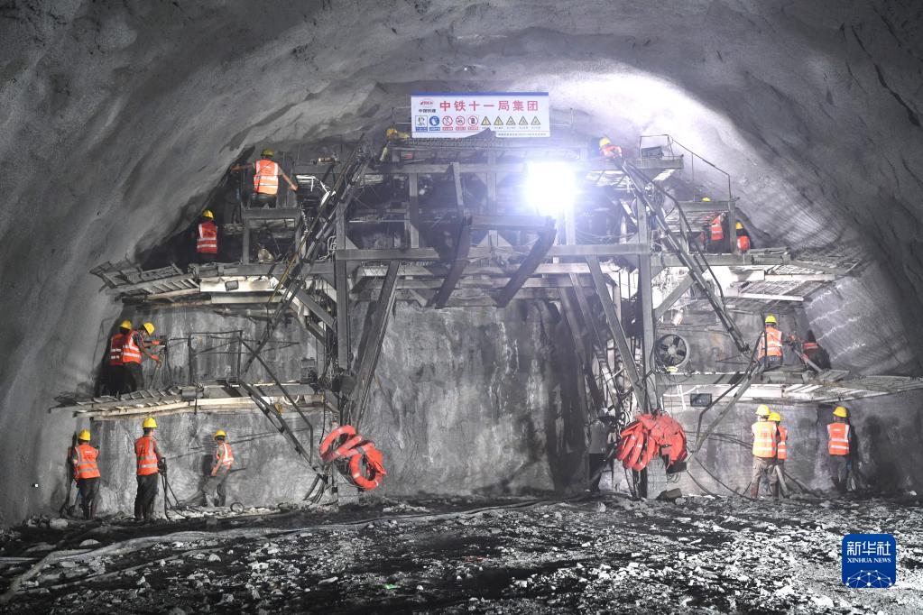 工人正在施工修建貴南(貴陽至南寧)高鐵廣西都安隧道(9月1日攝)。新華社記者 周華 攝