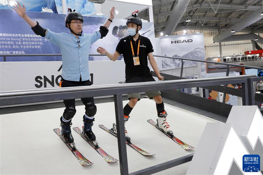 9月4日,一名參會人員(左)在服貿會首鋼園區體育服務展館體驗滑雪模擬設備。 2021年中國國際服務貿易交易會在北京舉行。本屆服貿會在北京首鋼園區設置八個專題展,圍繞電信、計算機和信息服務、金融服務、文旅服務、教育服務、體育服務、供應鏈及商務服務、工程咨詢與建筑服務、健康衛生服務等專題,充分展示相關領域在數字化、網絡化、智能化發展趨勢下的新技術、新模式、新成果。 新華社記者 張玉薇 攝