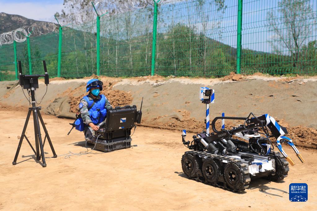 9月8日,在“共同命運-2021”國際維和實兵演習專業分訓中,參演官兵利用排爆機器人進行排爆作業。 新華社記者 劉芳 攝