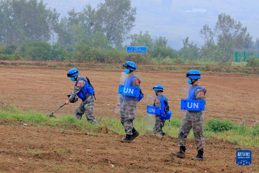 9月7日,在“共同命運-2021”國際維和實兵演習專業分訓中,參演官兵組織封控訓練。 新華社記者 劉芳 攝