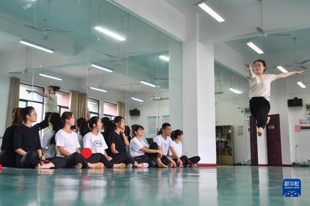 在長沙職業(yè)技術(shù)學(xué)院特殊教育學(xué)院的舞蹈房里,鄧蕓虹(左)用手語鼓勵學(xué)生(9月7日攝)。 鄧蕓虹2014年畢業(yè)于浙江師范大學(xué)舞蹈專業(yè),同年進入長沙職業(yè)技術(shù)學(xué)院后擔(dān)任特殊教育學(xué)院專職輔導(dǎo)員和舞蹈社團指導(dǎo)教師。一次舞蹈課后,鄧蕓虹收到了來自聽障學(xué)生的一條短信:“鄧老師,您好!我能跟您學(xué)跳舞嗎?”鄧蕓虹發(fā)現(xiàn),學(xué)校有很多想要學(xué)習(xí)跳舞的聽障學(xué)生,借著這個契機,她組建了聽障大學(xué)生舞蹈社團。 為了讓自己迅速融入學(xué)生們的“無聲世界”,鄧蕓虹利用業(yè)余時間學(xué)習(xí)手語,同時研究教法、編創(chuàng)舞蹈作品、訓(xùn)練指揮團隊……她發(fā)現(xiàn),學(xué)生雖然聽不到聲音,但感知力和模仿能力很強。在課堂上,她會根據(jù)經(jīng)驗設(shè)計動作、表情和眼神,讓學(xué)生充分理解音樂傳遞的情感。 “我當(dāng)他們的耳朵,我就是他們的音樂。”鄧蕓虹說,為了學(xué)習(xí)舞蹈,聽障學(xué)生比常人要多付出十幾倍的努力,通過學(xué)習(xí)舞蹈,他們也變得開朗自信,幫助學(xué)生圓“舞蹈夢”的使命將激勵她一直堅持下去。 新華社記者 陳澤國 攝