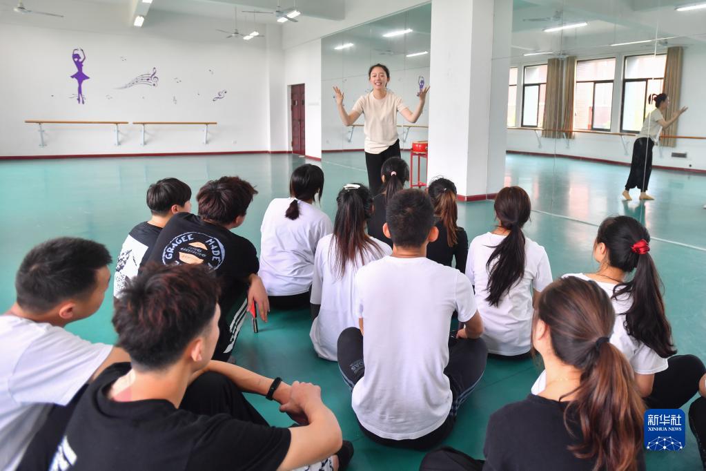 在長沙職業(yè)技術(shù)學(xué)院特殊教育學(xué)院的舞蹈房里,鄧蕓虹用手語為學(xué)生講解舞蹈內(nèi)容(9月7日攝)。 鄧蕓虹2014年畢業(yè)于浙江師范大學(xué)舞蹈專業(yè),同年進入長沙職業(yè)技術(shù)學(xué)院后擔(dān)任特殊教育學(xué)院專職輔導(dǎo)員和舞蹈社團指導(dǎo)教師。一次舞蹈課后,鄧蕓虹收到了來自聽障學(xué)生的一條短信:“鄧老師,您好!我能跟您學(xué)跳舞嗎?”鄧蕓虹發(fā)現(xiàn),學(xué)校有很多想要學(xué)習(xí)跳舞的聽障學(xué)生,借著這個契機,她組建了聽障大學(xué)生舞蹈社團。 為了讓自己迅速融入學(xué)生們的“無聲世界”,鄧蕓虹利用業(yè)余時間學(xué)習(xí)手語,同時研究教法、編創(chuàng)舞蹈作品、訓(xùn)練指揮團隊……她發(fā)現(xiàn),學(xué)生雖然聽不到聲音,但感知力和模仿能力很強。在課堂上,她會根據(jù)經(jīng)驗設(shè)計動作、表情和眼神,讓學(xué)生充分理解音樂傳遞的情感。 “我當(dāng)他們的耳朵,我就是他們的音樂。”鄧蕓虹說,為了學(xué)習(xí)舞蹈,聽障學(xué)生比常人要多付出十幾倍的努力,通過學(xué)習(xí)舞蹈,他們也變得開朗自信,幫助學(xué)生圓“舞蹈夢”的使命將激勵她一直堅持下去。 新華社記者 陳澤國 攝