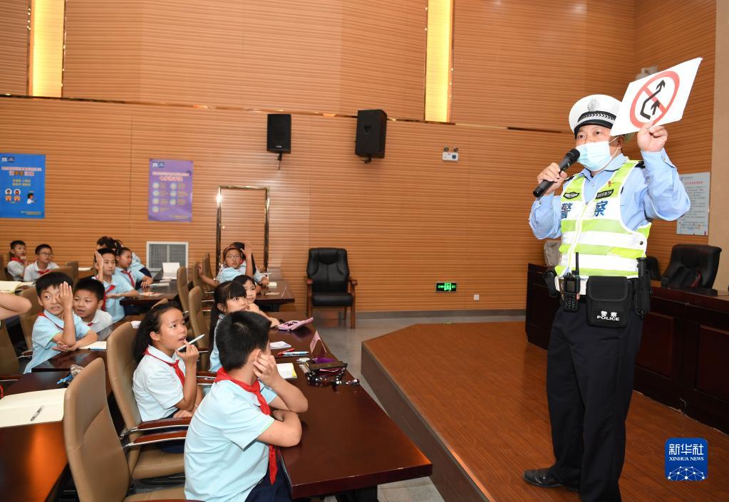 9月13日,合肥市公安局交警支隊包河大隊民警為孩子們講解交通安全標識。