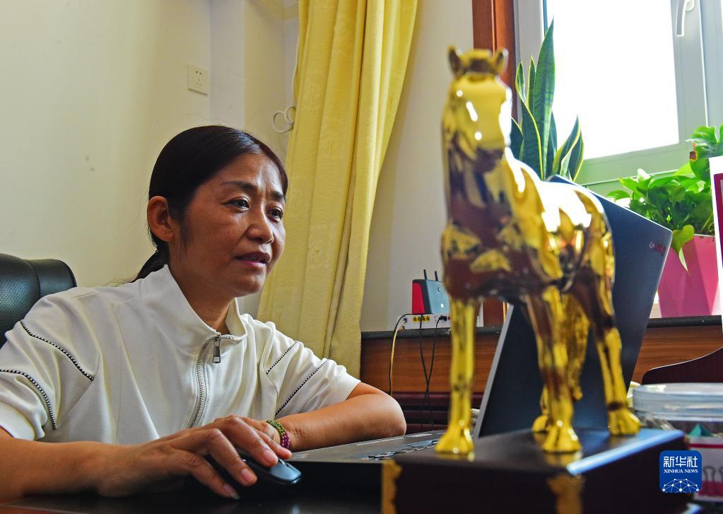 在新疆野馬繁殖研究中心,工程師張赫凡在辦公室整理拍攝的野馬照片(8月10日攝)。 新華社記者 侯昭康 攝