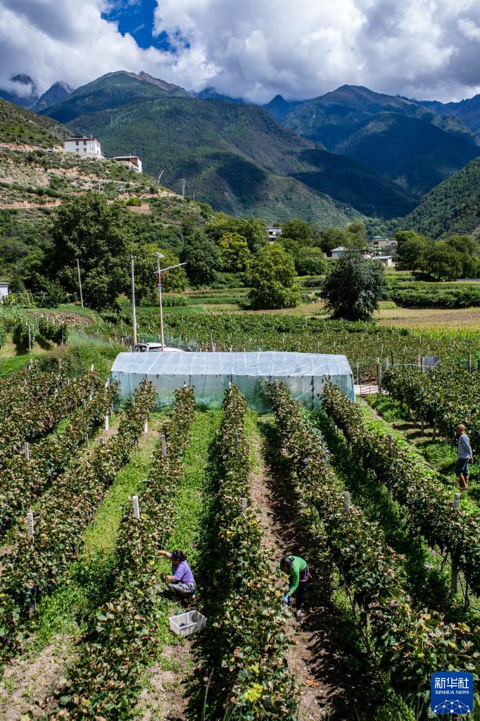 9月14日,云南省迪慶藏族自治州德欽縣云嶺鄉(xiāng)紅坡村農(nóng)民在田里采摘葡萄。新華社記者胡超 攝