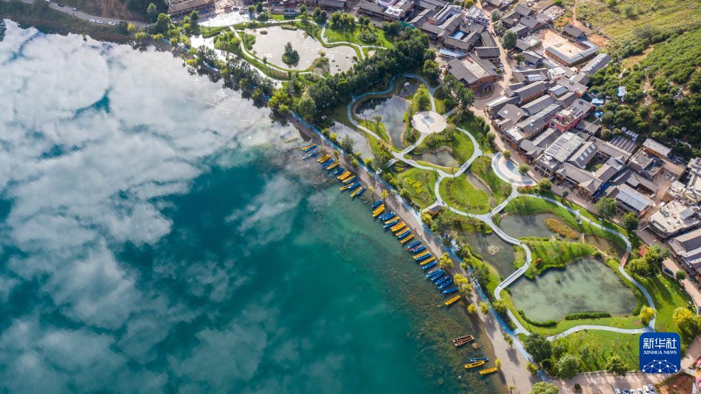 9月24日拍攝的瀘沽湖和周邊的村莊景象(無人機照片)。